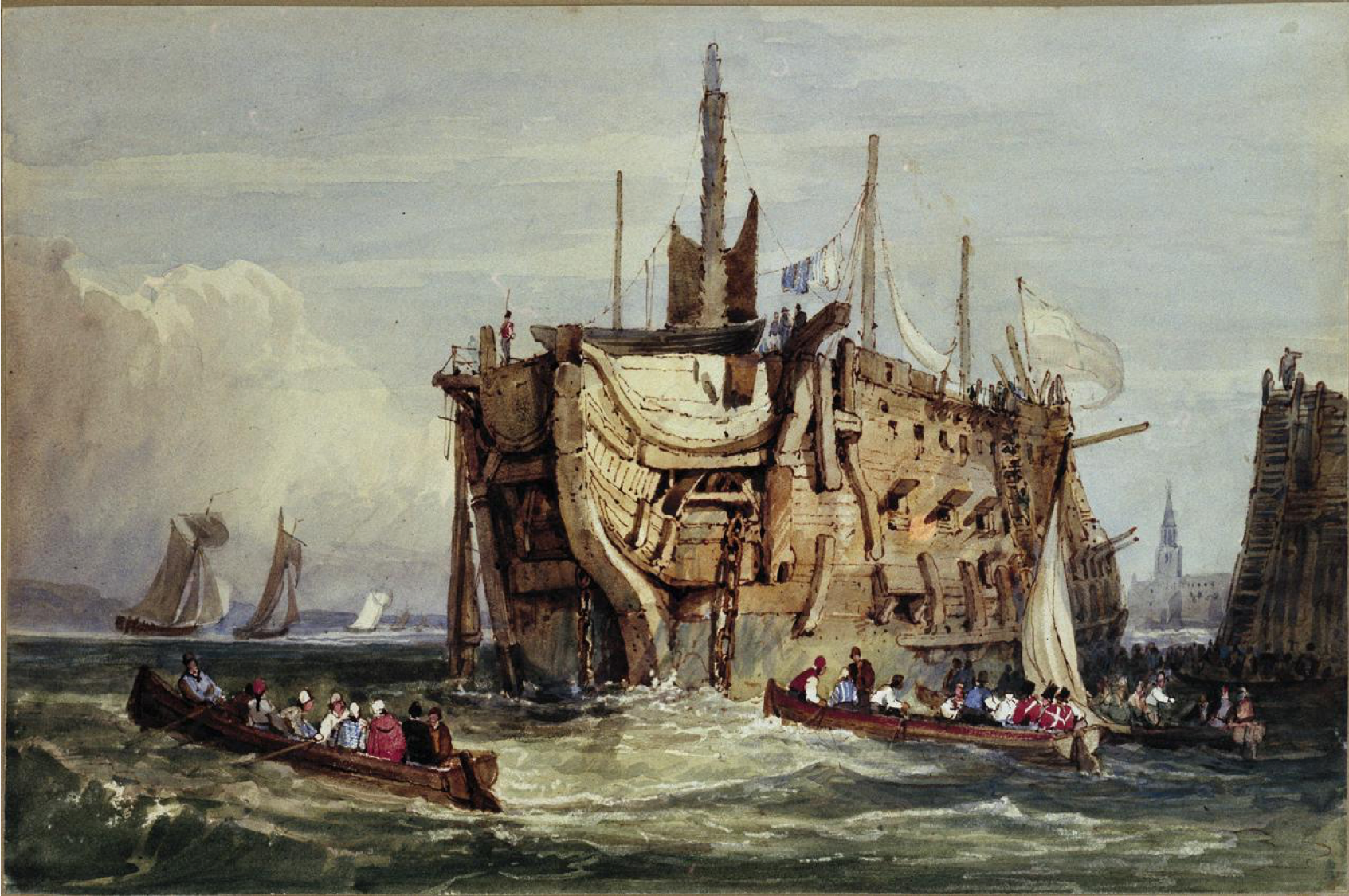 Benjamin was now to be ‘initiated’ into a malevolent kind of marine society. Like many convicts under sentence of transportation, including James Ratty, Benjamin was sent to the hulks moored at Woolwich: decommissioned vessels that served as makeshift, floating prisons. Unlike many convicts who spent anything from a few months to a year or two on a hulk before enduring a single long sea voyage to the colony, however, Benjamin served considerably more time in those conditions—six and a half years in all—floating on a ship to nowhere, moving only as far as the next hulk on the Thames.[43]
