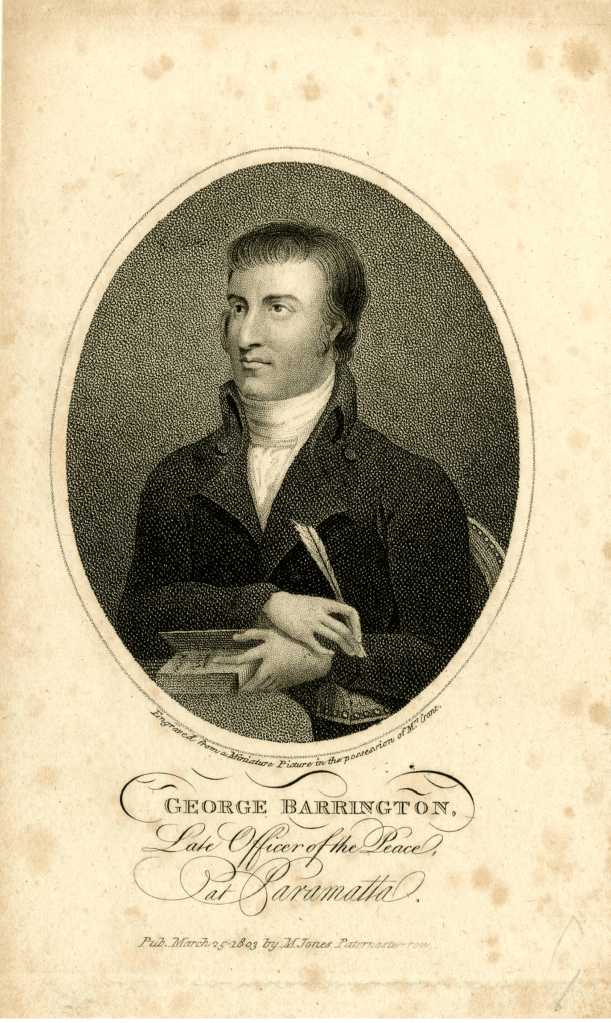 All night long, convicts broke and burnt ‘all the benches and moveables in their wards’ at Newgate, ‘shouting, singing,’ tearing up boards, trying to set fire to the prison, and ‘continually opening and shutting all the doors at once.’[1] The latter rite, known as ‘firing the great guns,’ was ‘peculiar to Christmas Eve and New Years Day’—but it was late February 1791.[2] The convicts had unseasonally appropriated the rite as their ‘parting ceremonial’ so as to ‘manifest their joy’ at their imminent transportation to the penal Colony of New South Wales.[3] And, as the reporters of the day would rush to tell it, only one man could have served as the principal of this anarchic scene ‘from a desire [to] go … off with éclat’[4]: the celebrity cutpurse whose ‘memoirs’ were at that very moment advertised in all the newspapers; a man ‘well known throughout the three kingdoms’[5] for his exquisitely artful dodging and whose much admired eloquence and theatricality at the Old Bailey had ensured his ‘polite legerdemain’[6] had not resulted in a trip beyond the seas as an ‘involuntary passenger’ for the better part of two decades.[7] Yet, having finally caught, tried and successfully sentenced this undisputed ‘genius,’ it seems the authorities could hardly wait to let him go.[8] Just seven months later, the ‘Prince of Pickpockets,’ the ‘celebrated George Barrington’ would be appointed the subordinate to Thomas Daveney, the Superintendent of Convicts at Toongabbie, Toogagal Country, and was soon made Principal Watchman, earning him a conditional pardon and a land grant before the end of the following year.[9] By September 1796, he had another Parramatta land grant in Burramattagal Country, a full pardon, and was promoted to Chief Constable of Parramatta.[10]