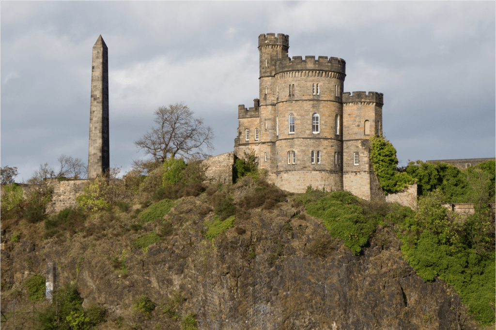 On the left is the Political Martyrs Monument in the Old Calton Burial Ground on Calton Hill, Dùn Èideann (Edinburgh), Alba (Scotland), by Carlos Delgado (2013) (CC BY-SA 3.0) via Wikimedia Commons. The monument is a Category A listed memorial to five political prisoners transported to New South Wales. It is a 90 ft obelisk of grey-black sandstone blocks on a square-plan base plinth. On one side is inscribed: “To the memory of Thomas Muir, Thomas Fyshe Palmer, William Skirving, Maurice Margarot and Joseph Gerrald. Erected by the Friends of Parliamentary Reform In England and Scotland. 1844.” George Mealmaker’s name is notably absent, which has resulted in him being referred to as “The Forgotten Martyr.” On another face are quotations from two of the men commemorated on the monument: “I have devoted myself to the cause of The People. It is a good cause—it shall ultimately prevail—it shall finally triumph.” — Speech of Thomas Muir in the Court of Justiciary on the 30th of August 1793. “I know that what has been done these two days will be Re-Judged.”— Speech of William Skirving in the Court of Justiciary on the 7th of January 1794. The Governor’s House is the building in the centre of the image.