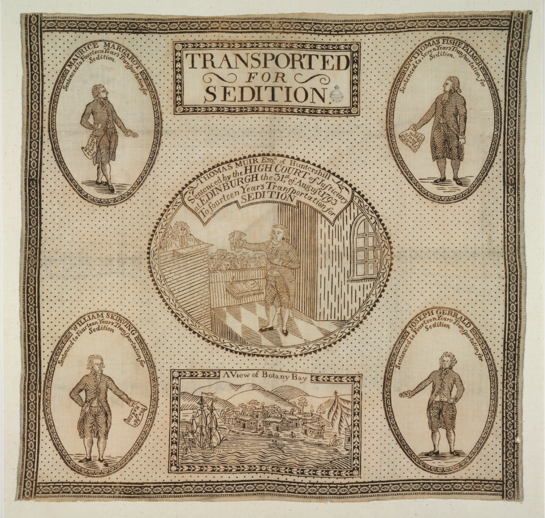 The founding of New South Wales took place roughly sixteen months prior to the French Revolution. In Britain, the events in France prompted an explosion of speeches, sermons, and pamphleteering, supported by an expanding number of periodicals and societies like the Friends of the People.[8] In the early years of the revolution, it was not uncommon for leading public figures to praise the French, albeit through self-congratulatory references to England’s own ‘Glorious’ revolution in 1688.[9] In reality, the landed classes in eighteenth-century Britain enjoyed enormous power whilst many regarded the House of Commons as a profoundly corrupt and unrepresentative body that had failed to contain the power of the royal state.[10] Struggles between the propertied classes and labourers had been going on for much of the century, yet progressive social elites inspired by Enlightenment ideals also began pursuing their own reform agenda. In the 1780s, Scottish Whigs began campaigning for political reform at the town and county level.[11] This kind of moderate political reform, led by urban middle classes, sought only a limited extension of voting rights, let alone universal suffrage.[12] Yet many of the ‘lower orders,’ particularly skilled artisans and small shopkeepers, had a growing self-confidence. When the French Revolution broke out, they began demanding greater representation in Parliament, especially through more frequent elections and universal male suffrage.[13]