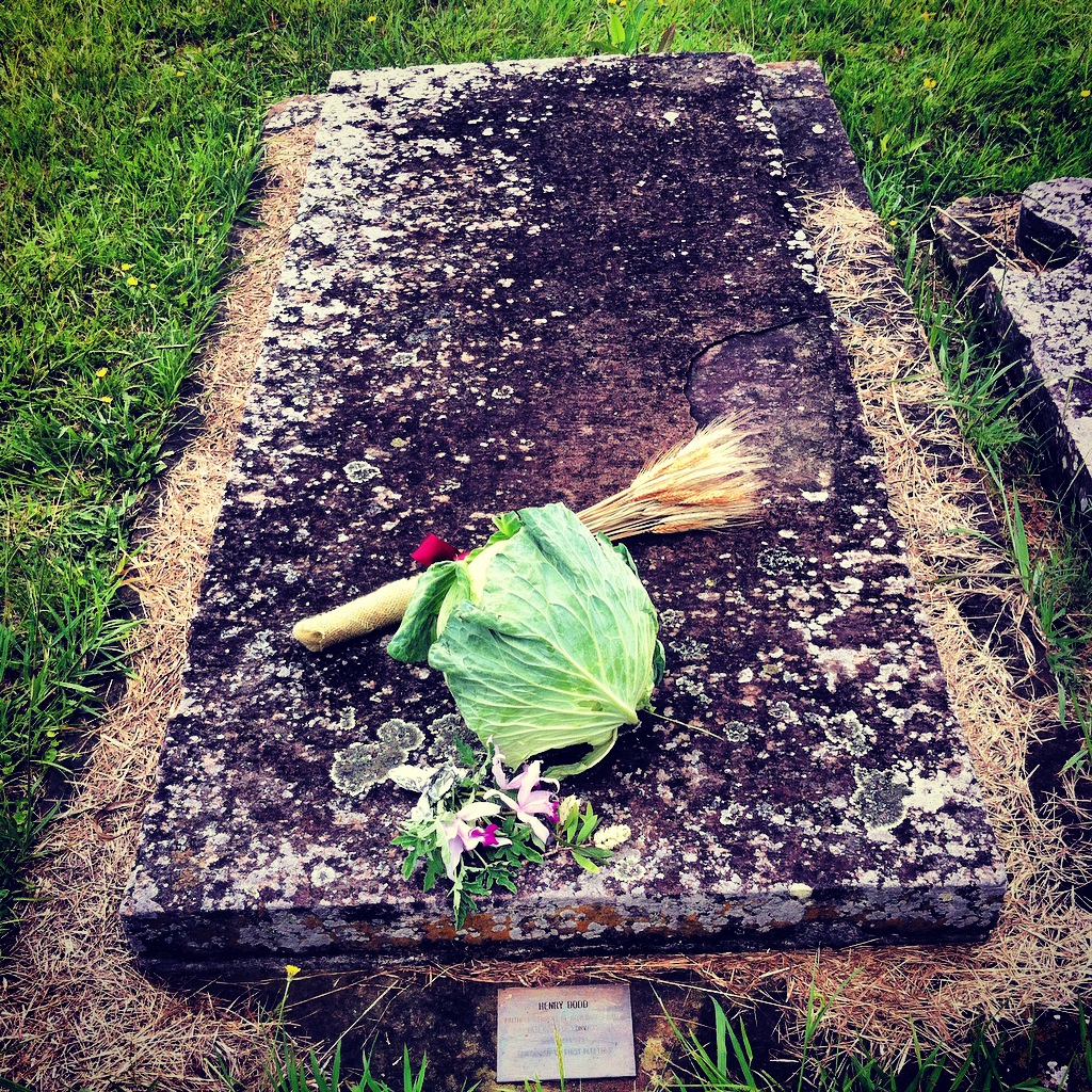 Not just a floral tribute to celebrate Dodd’s life, death, and public funeral on 26 January 2016; a bushel of wheat and a large cabbage also commemorated Dodd’s achievements. Michaela Ann Cameron, “Henry Edward Dodd Memorial, (R.28.D), St. John’s Cemetery, Parramatta,” St. John’s Online (2016), (CC BY-NC-SA 4.0) © Michaela Ann Cameron
