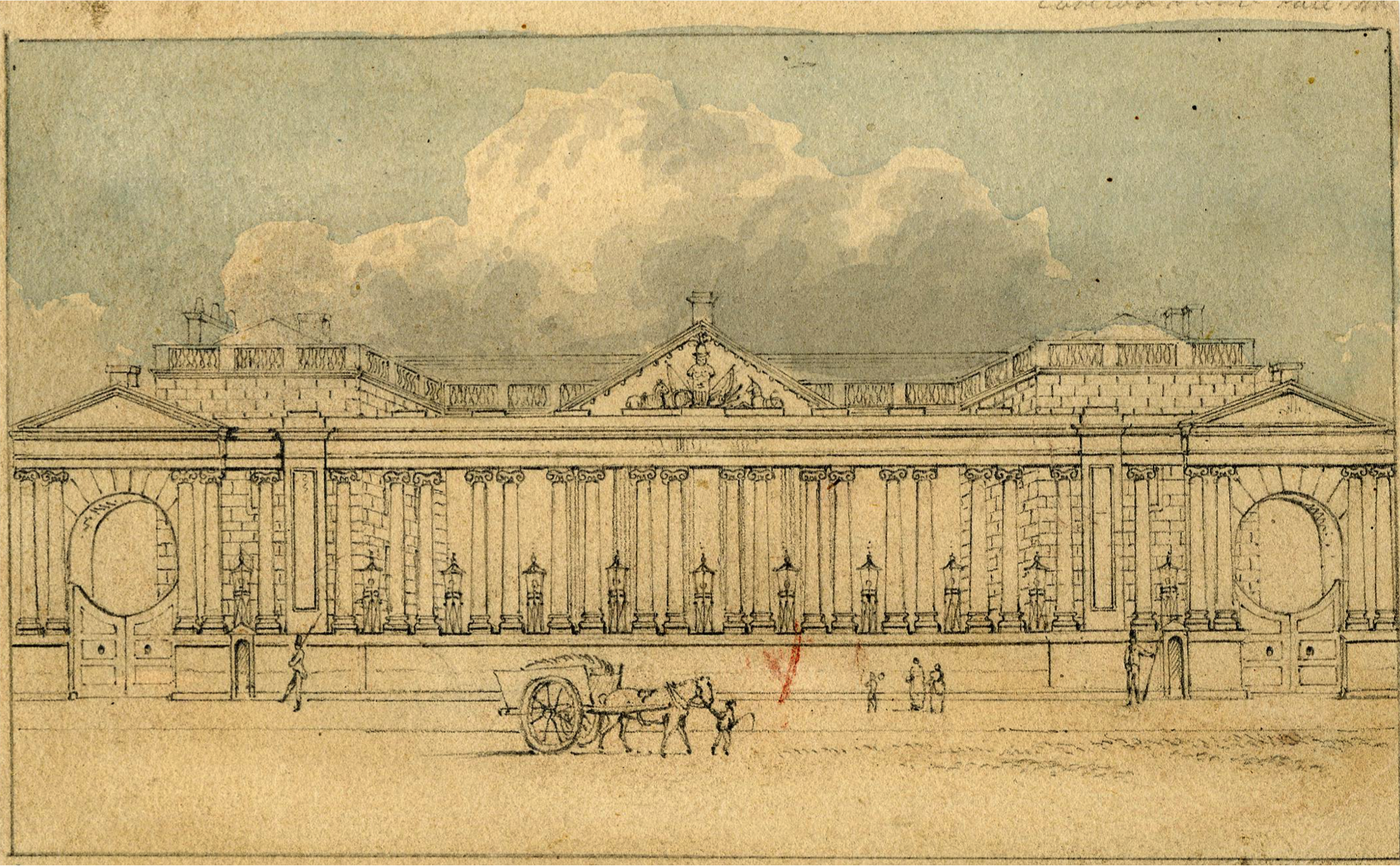 CLICK IMAGE TO ENLARGE. “View of the front of Carlton House [also known as Carleton House], on Pall Mall,” artist unknown, (c. 1780–1820), Nn,7.37.1 / 1835,0711.203, (CC BY-NC-SA 4.0), © The Trustees of the British Museum.
