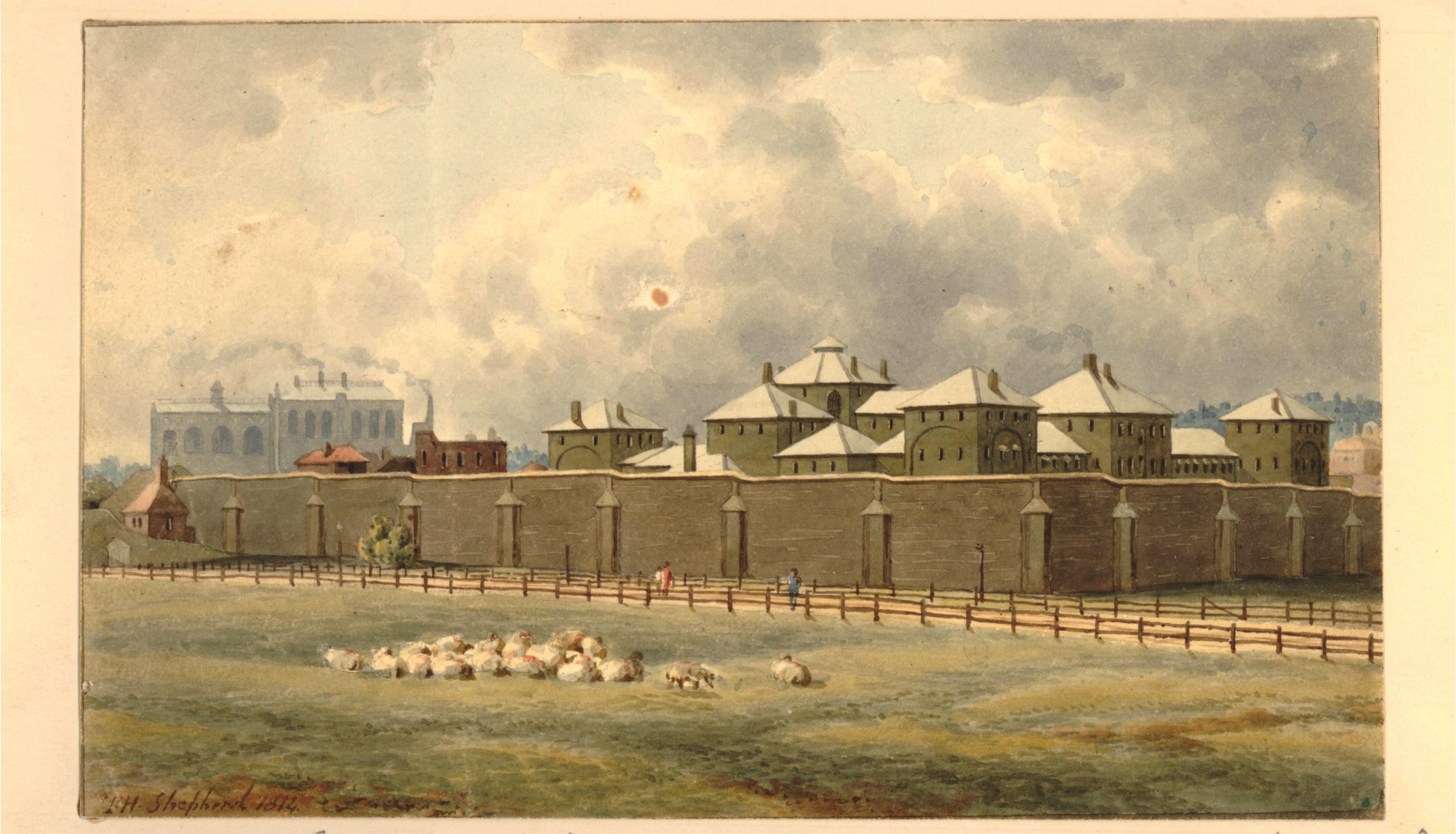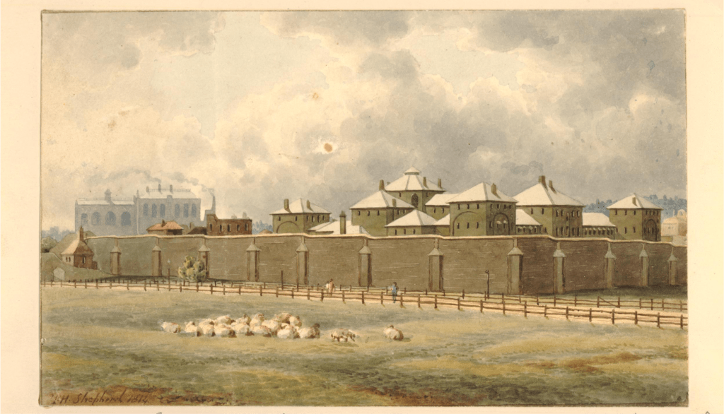 CLICK IMAGE TO ENLARGE. View of the Prison at Cold Bath Fields, by Thomas Hosmer Shepherd (1814), 1880,1113.4845, (CC BY-NC-SA 4.0), © The Trustees of the British Museum.