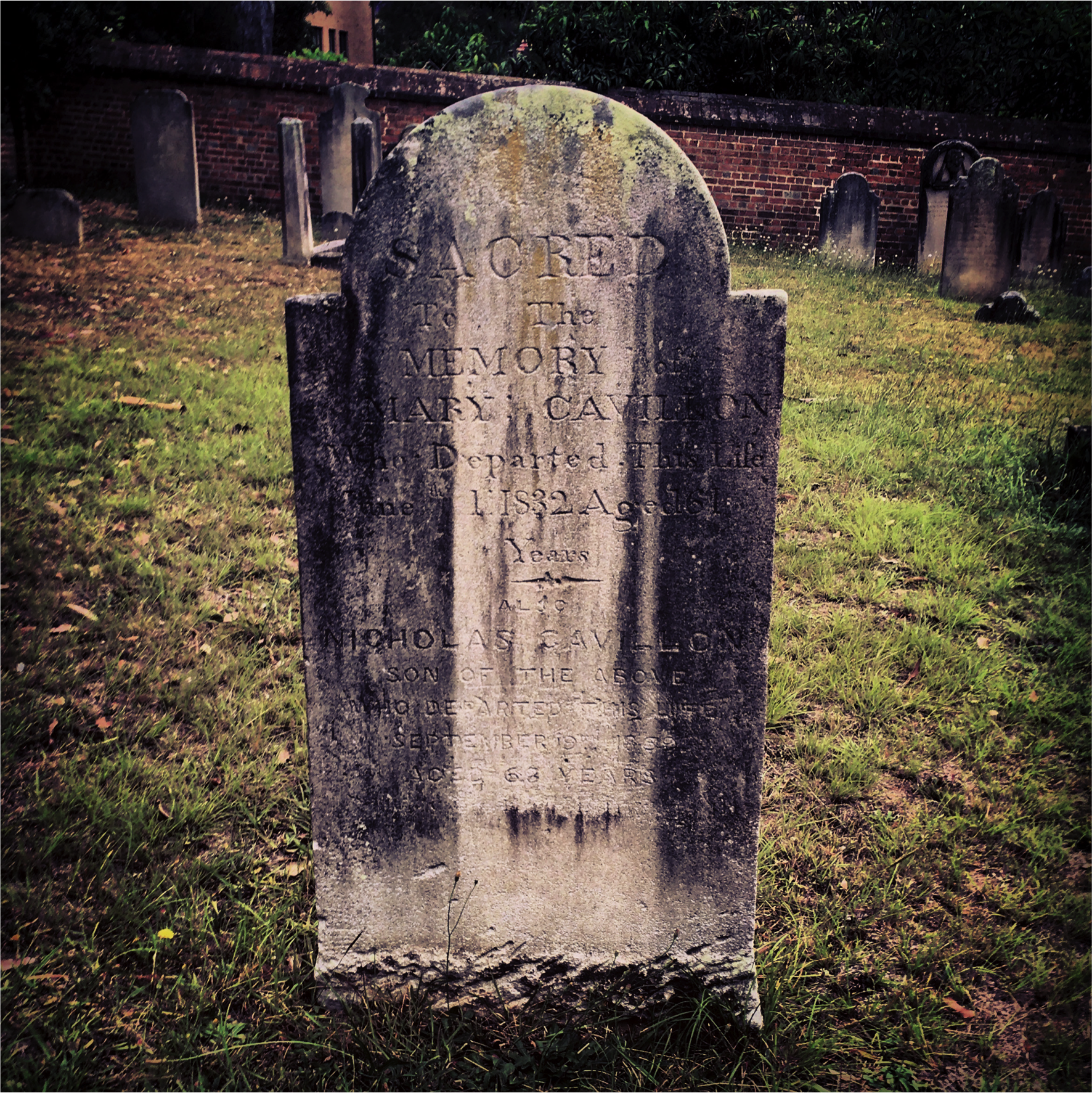 On 1 June 1832, death released the housebreaker from her life sentence.[93] She may have been about fifty-six years old (although her headstone does state that she was sixty-one), her cause of death was not recorded. And while much of her relationship with Nicholas when he reached adulthood and became her master is unknowable, this much is true: he was the only one of her children who accompanied her to the penal colony where, despite arriving free, he would have endured many of the hardships his mother’s crimes had wrought, right alongside her. When he was able, he got her out of the factory. When she died and was buried at St. John’s Cemetery, he supplied her with a headstone bearing not her convict-stained alias ‘Isabella Phillips’ by which she was officially known here, but by her true name, ‘Mary Cavillon.’[94] And when he passed away, he was buried with her in the same grave.[95]