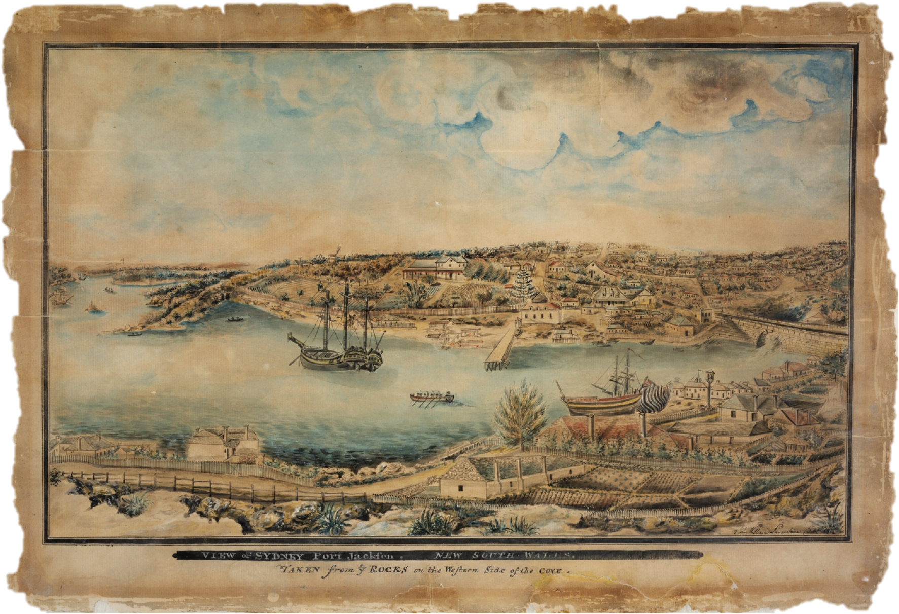 The Glatton sailed from England on 23 September 1802, and its 169-day voyage to New South Wales seemed to be quite a success medically speaking, especially compared to earlier crossings.[21] ‘By means of air-tubes and other contrivances, together with due attention to cleanliness and diet,’ fever and flux had been avoided, so there was no loss of life due to shipborn diseases or accidents; the seven convicts who passed away during the voyage had instead died from ‘chronic disorders.’[22] All the same, as the Sydney Gazette recorded, ‘The day before [the Glatton] got into the Cove’ on 12 March 1803, ‘100 weak people were taken out, and put on board the Supply, 50 of the most ailing were soon after sent on shore to the General Hospital, where every attention was paid them. Their complaints were slightly scorbutic,’ meaning they were showing the early signs of scorbutus (scurvy), a severe vitamin C deficiency.[23] Based on James Lind’s description of the progression of the illness in his Treatise on the Scurvy (1757), these early signs would have included: