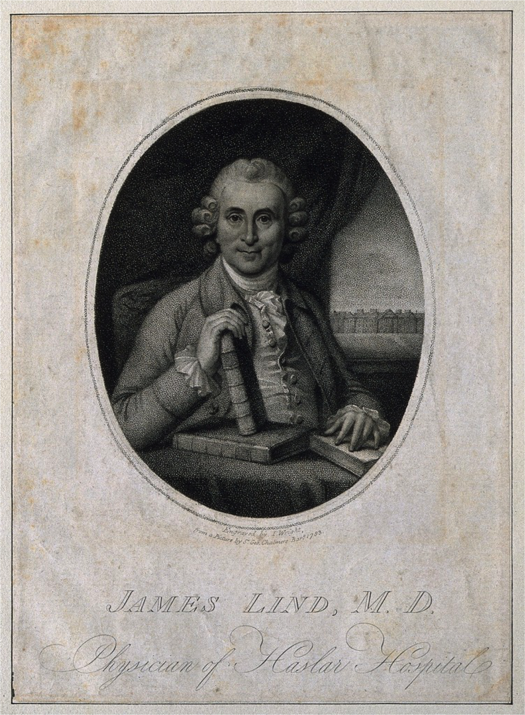 Image: James Lind, Stipple engraving by J. Wright after Sir G. Chalmers, (1783), from R. Burgess, Portraits of Doctors & Scientists in the Wellcome Institute, (London 1973), no. 1775.1. Wellcome Library no. 5826i, (CC BY 4.0), Wellcome Collection, Wellcome Library.