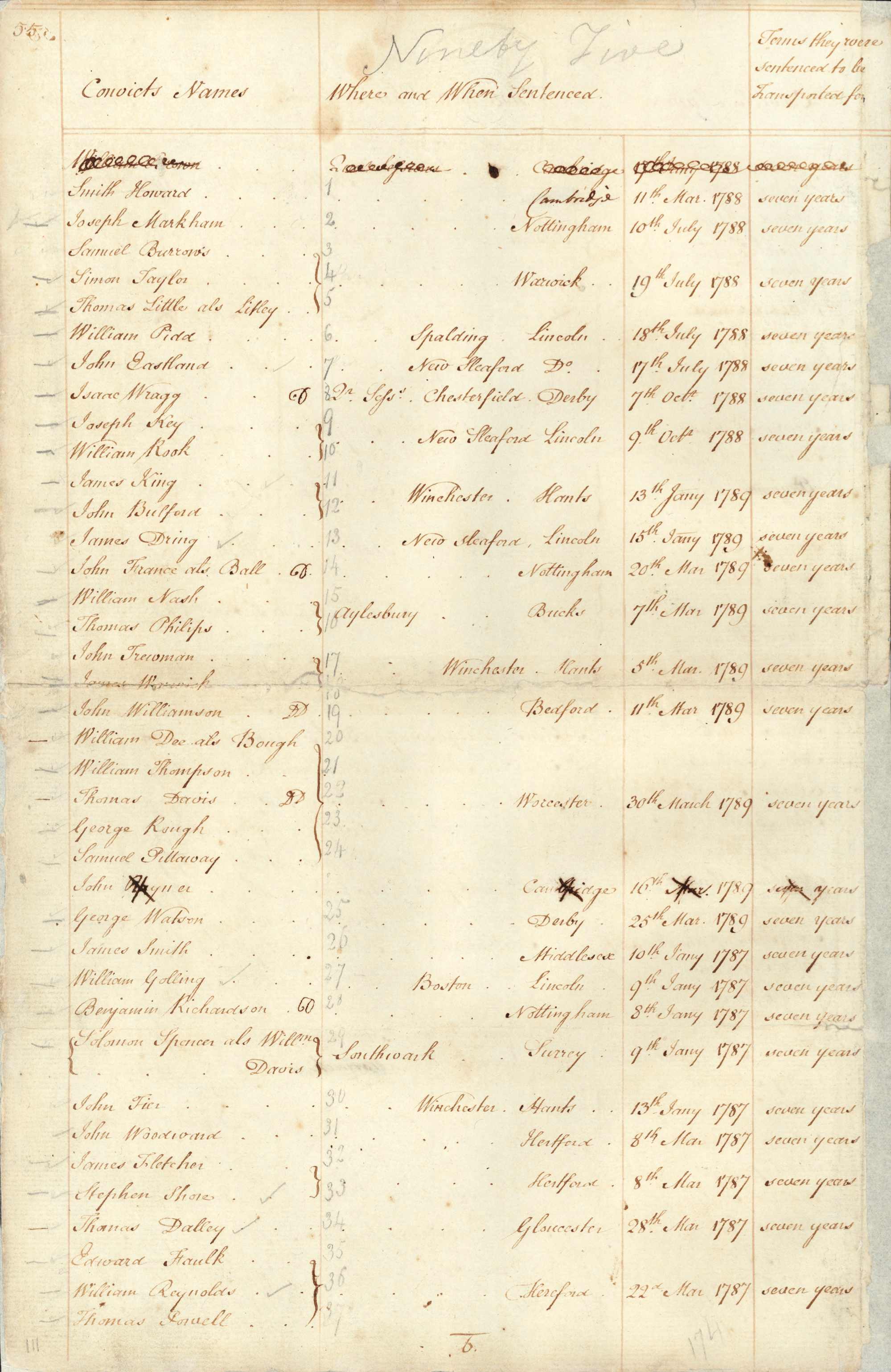 [13] “ANNE SMITH per Sugar Cane (1793),” New South Wales Government, Indents First Fleet, Second Fleet and Ships, NRS: 1150; Item: [SZ115]; Microfiche: 623, (State Library of New South Wales, Kingswood, New South Wales, Australia); Irish Convicts to New South Wales, 1788–1849 (http://members.pcug.org.au/~ppmay/cgi-bin/irish/irish.cgi, 2011), ANNE SMITH, http://members.pcug.org.au/~ppmay/cgi-bin/irish/irish.cgi?requestType=Search2&id=27249, accessed 27 October 2020.