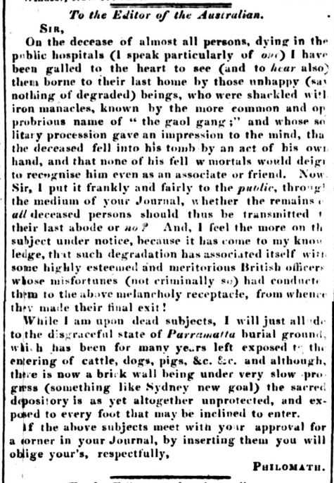 [8] Philomath, “To the Editor of the Australian,” The Australian (Sydney, NSW: 1824-1848), Thursday 30 December 1824, p.2