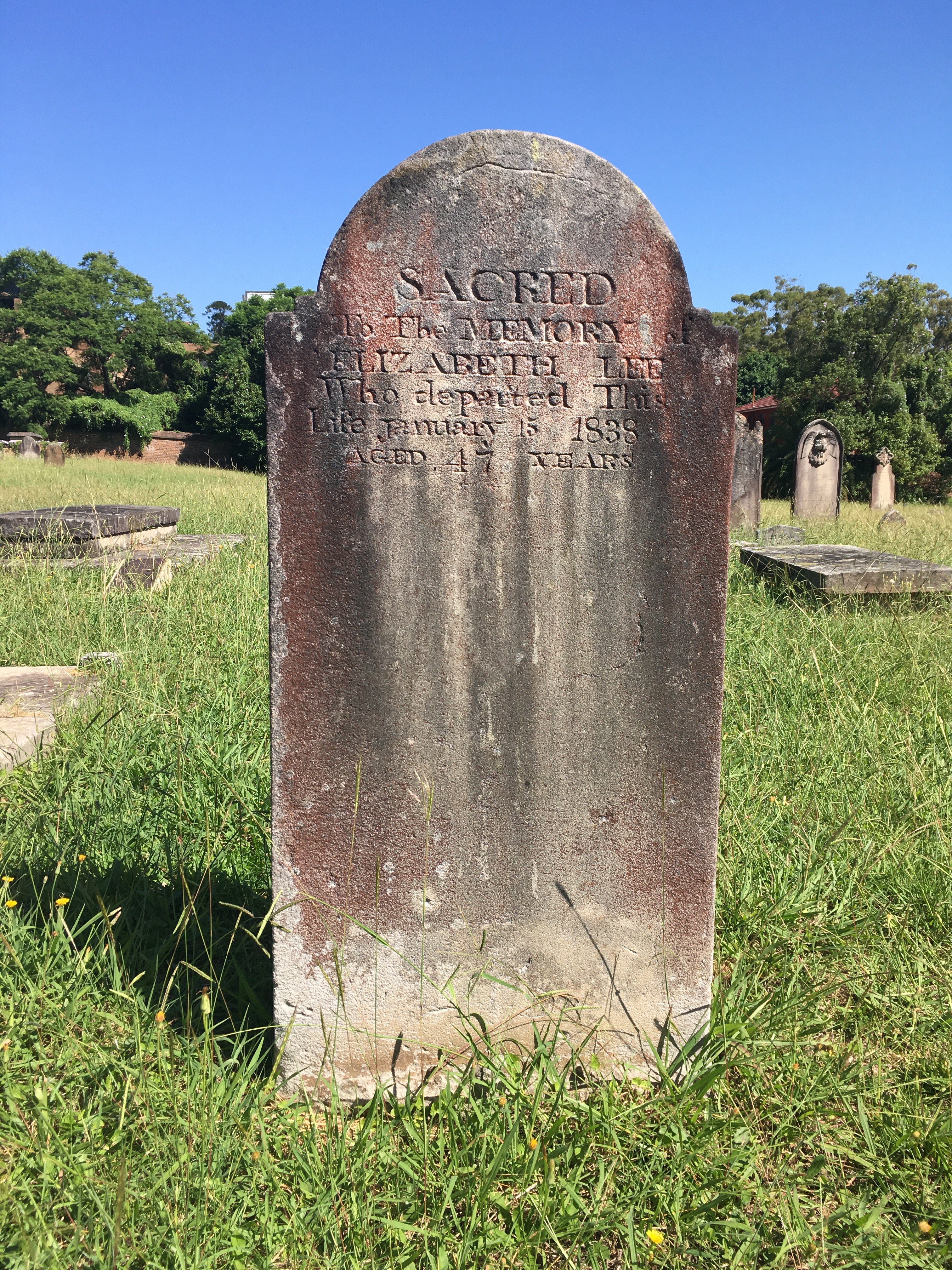 Michaela Ann Cameron, “Elizabeth Lee Memorial (R.18.A), St. John’s Cemetery, Parramatta,” St. John’s Online (2023), (CC BY-NC-SA 4.0) © Michaela Ann Cameron.